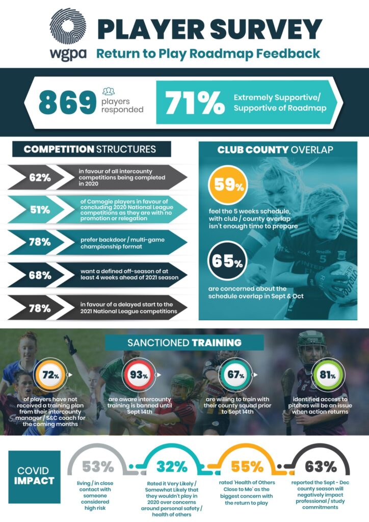 The Women’s Gaelic Players association has released data from a survey of almost 1,000 players which shows that a third are concerned about whether they would play in 2020 over concerns of the health of relatives.