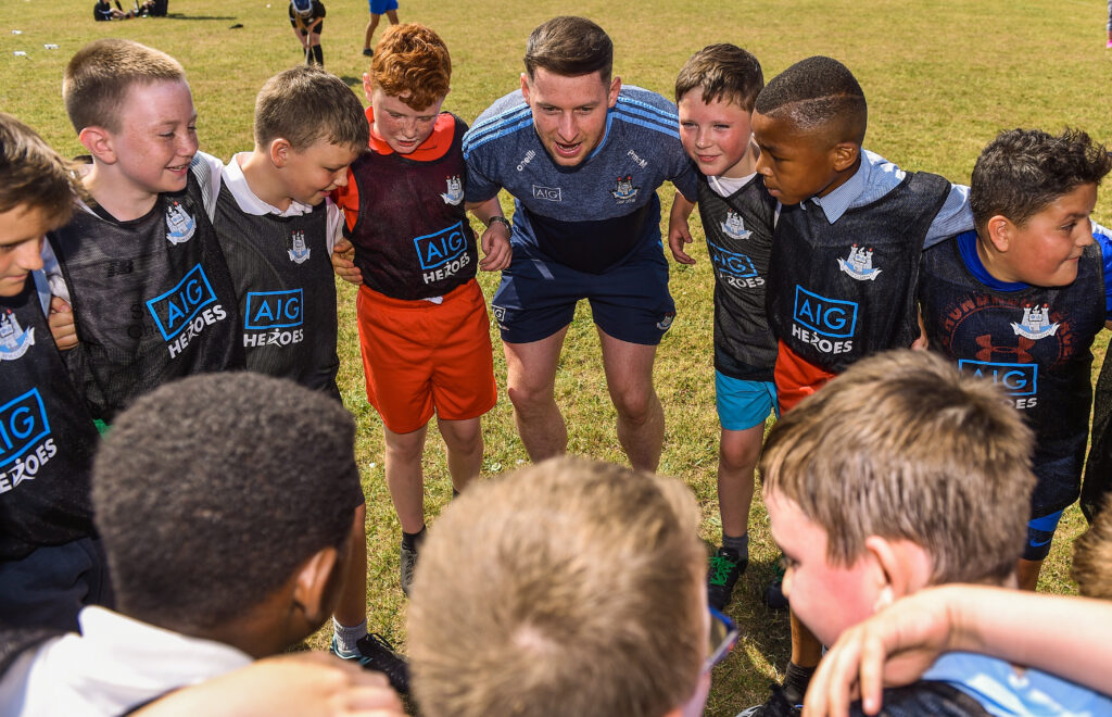 Philly McMahon was joined by Aoife Kane, Ali Twomey and Fergal Whitely and around 80 kids from local schools at Ballyfermot Sports Complex yesterday at the first AIG Heroes event in this the third year of the initiative.