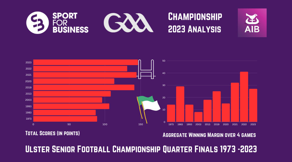 Diving deeper back into the history books there has been a marked increase in the number of scores at the corresponding stage. Back in what is seen by many as the halcyon days on the 1970’s there were only 95 points scored in the four quarter-finals of 1973, and an aggregate winning margin of 19 points, still equating to nearly five points per game.