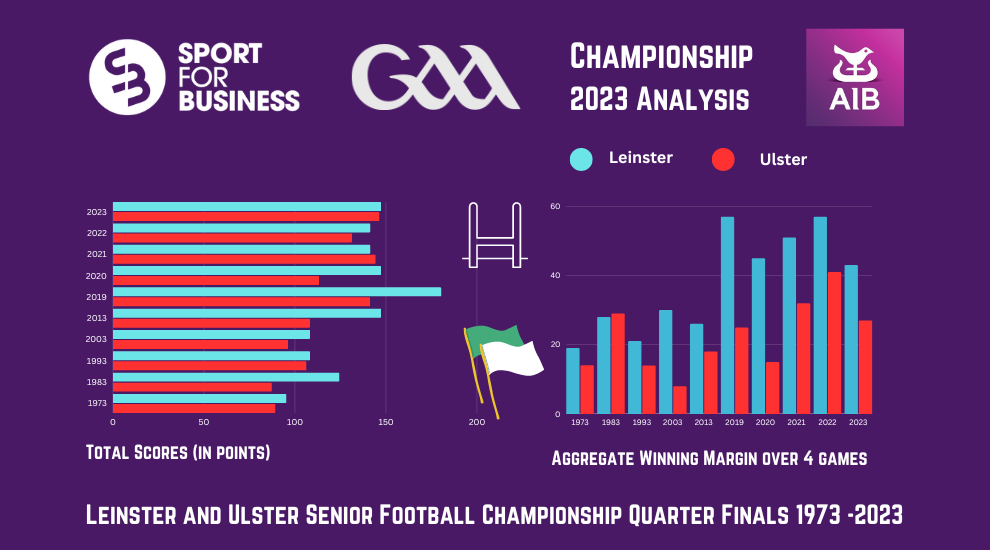 A comparison to the Ulster Football Championship figures for the same years below backs up the contention that it is a more competitive competition with the average winning margin in Unlster over the past five years being seven points in Ulster and a little over 12 in Leinster.