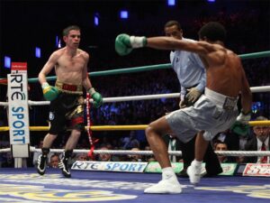 I remember being in Bernard Dunne’s dressing room after his last fight in New York.  Freddy Roche was his trainer and there were a lot of people around.  Brian Peters was there.