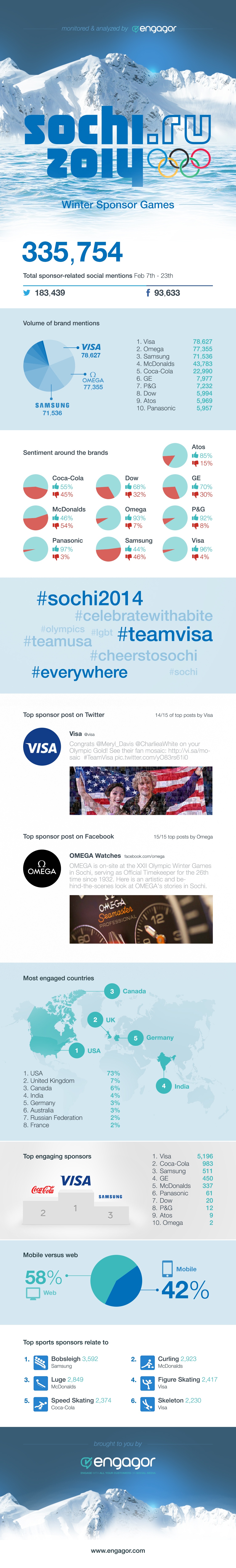 The infographic below from Engagor reveals analysis of over 335,000 sponsor mentions across social media as well as the split between mobile and desktop.