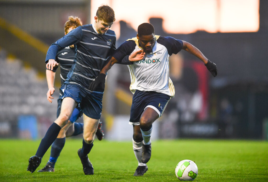 The GAA teams are sponsored by Bank of Ireland but DCU’s footballers played last night without a sponsor brand on their shirts.