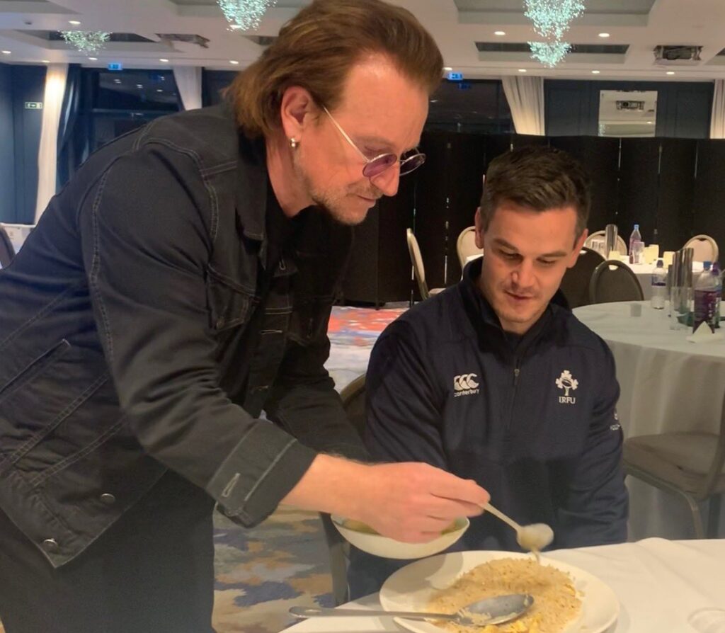 The Irish team were entertained at Carton House on Tuesday evening by Bono who had been their choice as an inspirational guest speaker and who answered ‘Ireland’s Call’ without a moment’s hesitation.