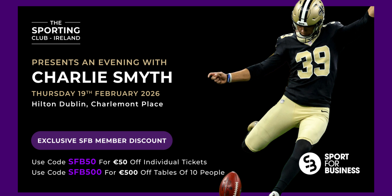 The Sporting Club Ireland has announced an upcoming Evening with NFL Kicker Charlie Smyth, with Sport for Business members offered exclusive early access and discounted tickets.