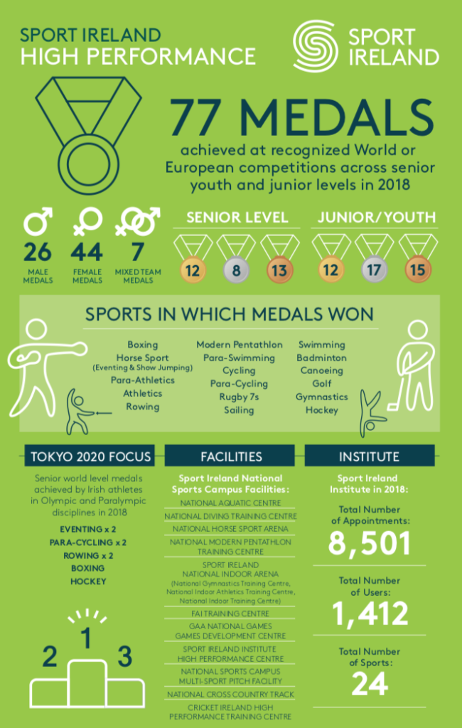 The final pillar announced yesterday was towards the High-Performance programmes of 21 individual sports, the Olympic Federation of Ireland and Paralympics Ireland. €820,000 will be divided almost equally between the latter two as preparations ramp up for Tokyo 2020, an increase of €122,500 on last year.