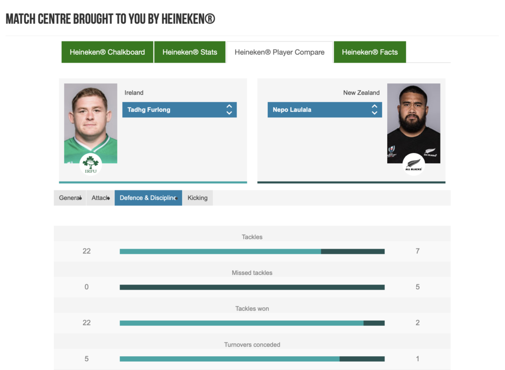 The Heineken Match Centre was developed by agency Starcom and is powered by Opta data, providing a range of engaging features that give insight into what’s happening during the Rugby World Cup before, during and after each match including interactive Team Chalkboards, Team Summary stats, Player Comparison and Match Facts that compare each head to head match up.