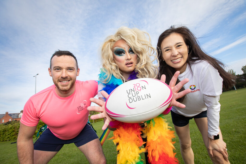 Vodafone’s drag mascot ‘Fona Lisa’ is pictured above with members of the team while fellow sponsors Guinness were also represented on Saturday.