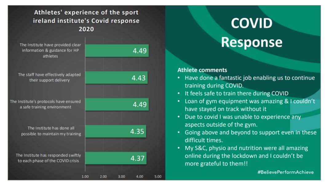 In particular, athletes reported very high satisfaction levels with the Institute’s Covid-19 response.
