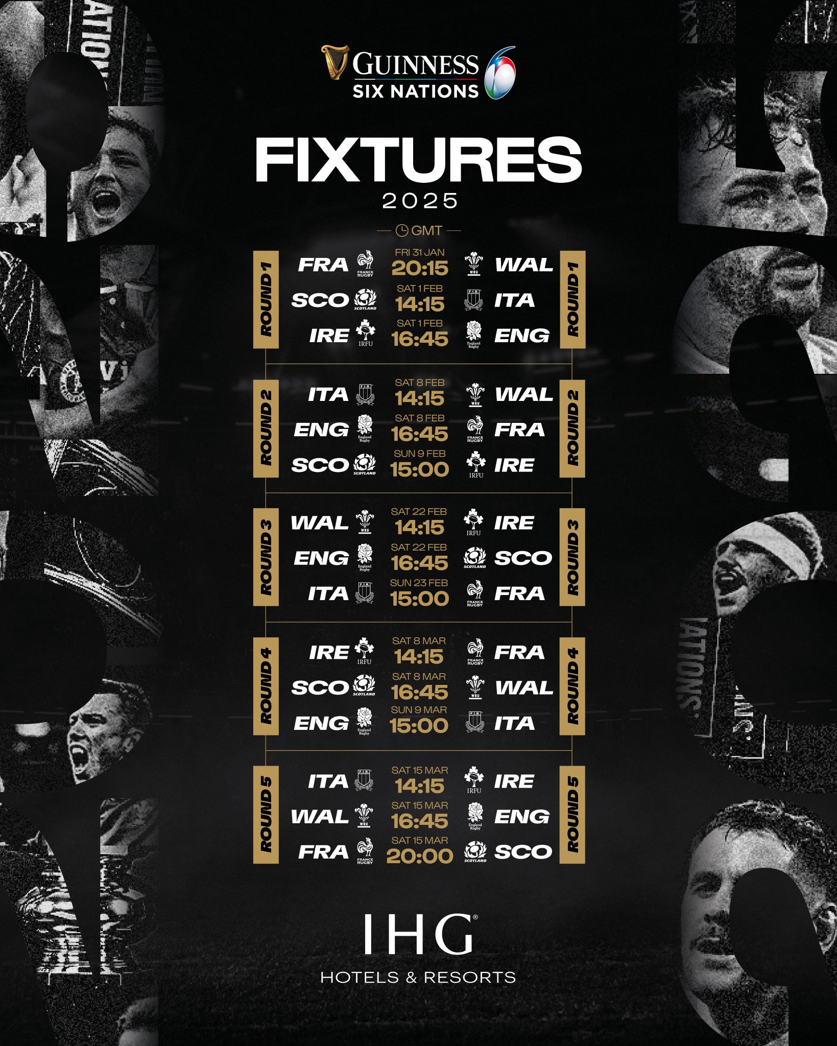 Much as this year’s scene was set on the opening weekend, Ireland will get the tournament underway next year with the opening round featuring the visit of England to the Aviva Stadium on Saturday 1st February for a 16:45 start.