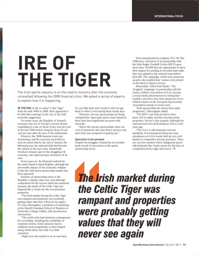 The article is a powerful statement in an influential forum. It positions Ireland as a central hub for how sport is likely to develop in commercial terms in the coming years.