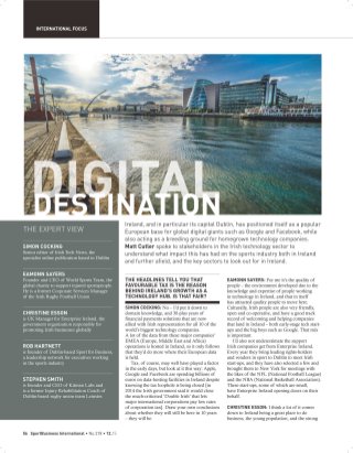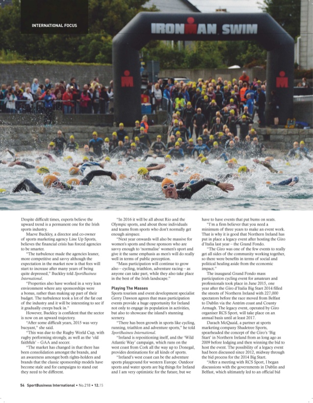 The feature includes contributions from experts including Maeve Buckley of Line Up SME, Rob Hartnett of Sport for Business, Stephen Smith of Kitman Labs and Gerry Dawson of Destination Marketing.