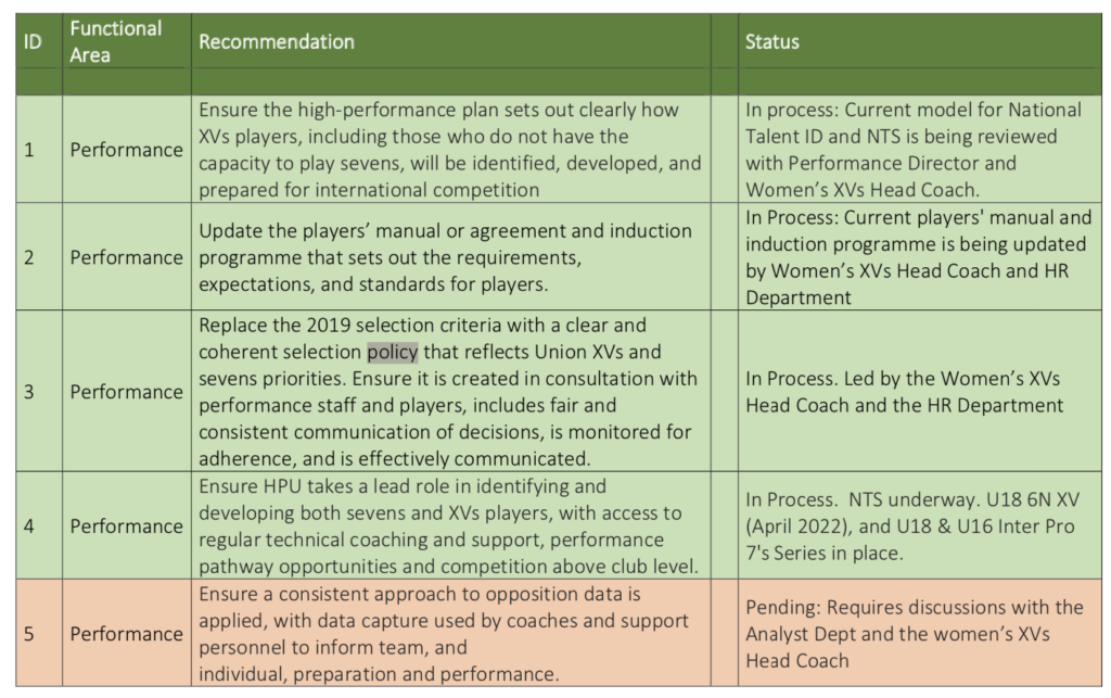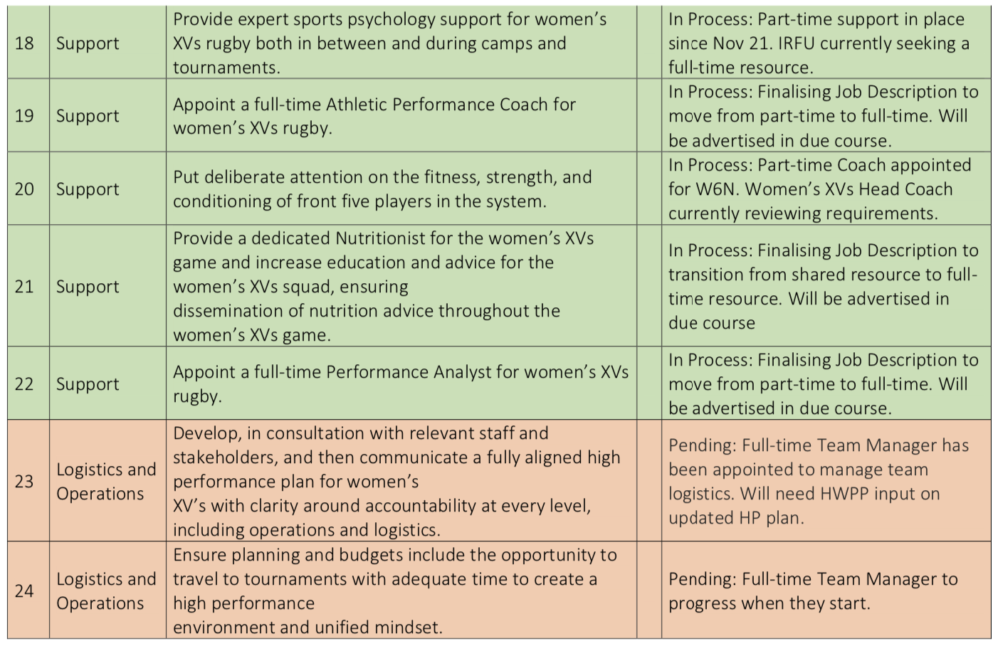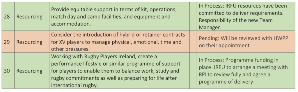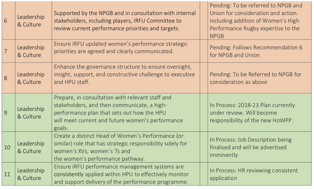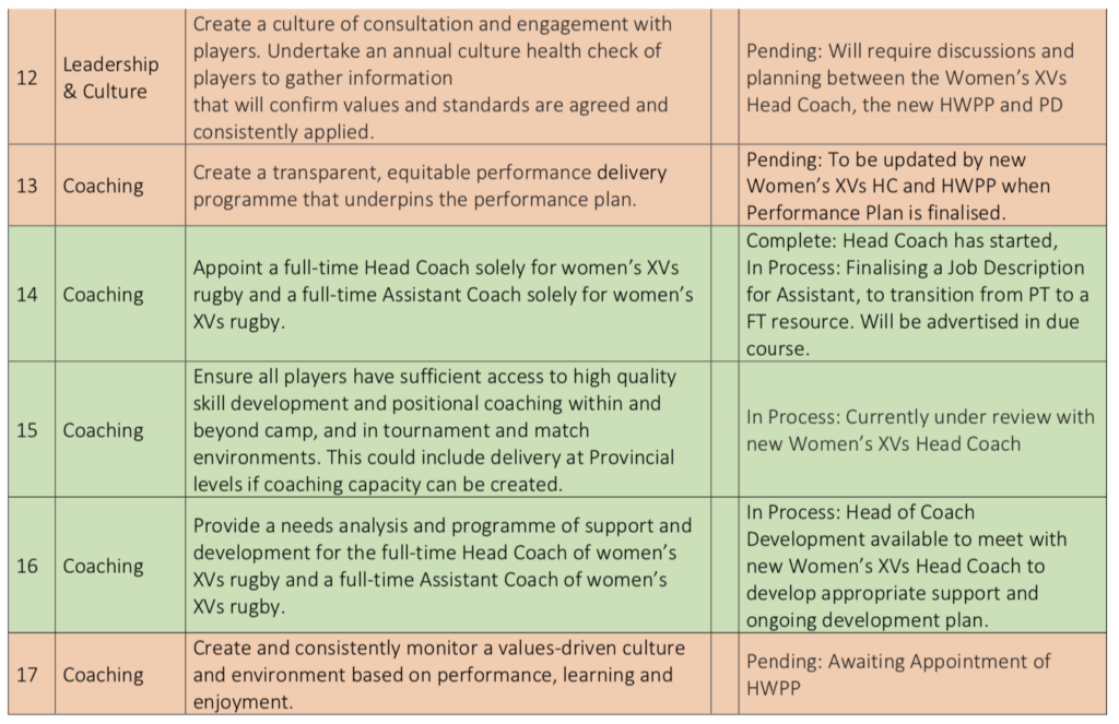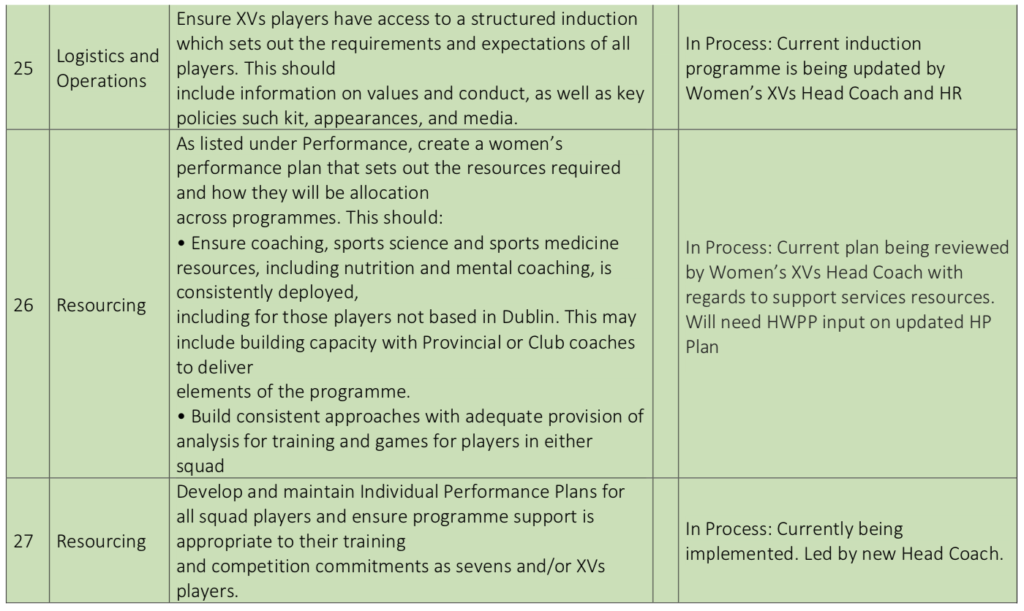 20 of the recommendations are already being progressed with the remaining ten largely just awaiting the appointment of a new Head of Women’s Performance and Pathway.