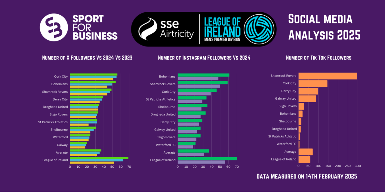 The League of Ireland account has grown across all three channels and now has in or around 70,000 followers on both X and Instagram. It has also performed consistently well in the engagement numbers we produce each month with our friends at Olytico.
