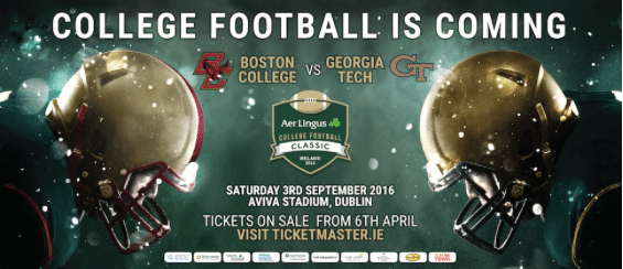 We are live this morning at Trinity College for the launch of the 2016 Aer Lingus College Football Classic between Boston College and Georgia Tech.