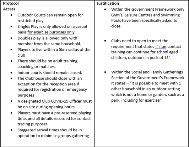 “Having considered very carefully the Government’s Framework for Living with Covid-19 and the protocols within it, and in the absence of more specific guidance from Government, the Board of Tennis Ireland’s interpretation is as follows and will be in place until further clarification is forthcoming.”
