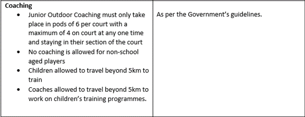 - All outdoor training for underage players is to be non-contact in pods of no more than 15 and in compliance with the latest Government guidelines