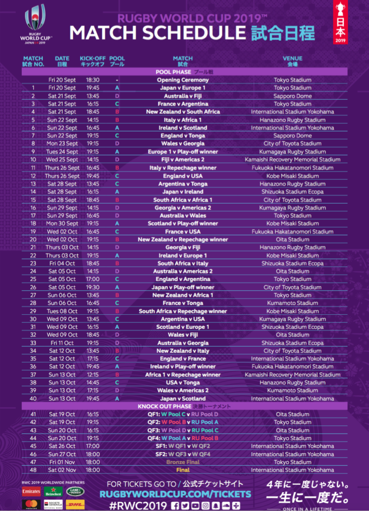 The sporting world moves on at a ferocious pace and while Ireland is still reflecting on the third-place finish in the evaluation of bids for hosting Rugby World Cup 2023, thoughts turned this morning to the dates of games we will face in Japan in 2019.