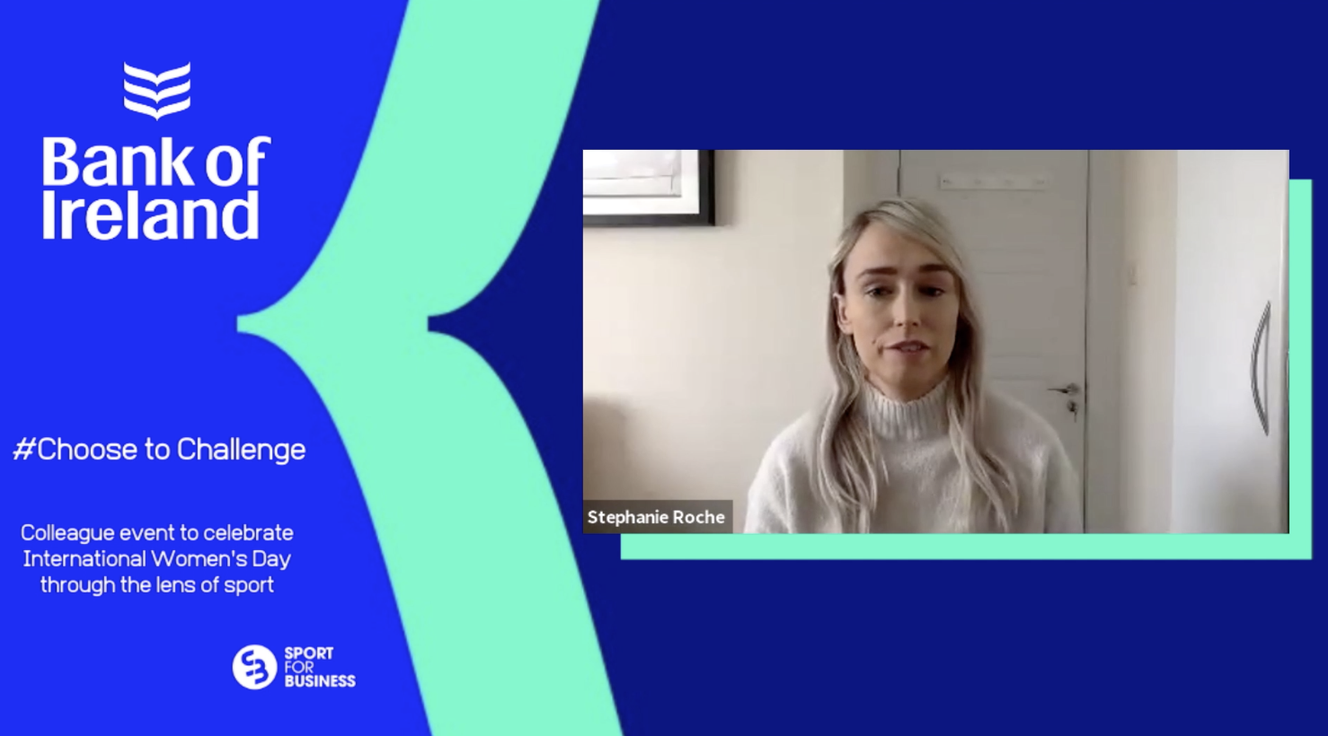 Stephanie Roche and Áine O’Gorman appeared on a Sport for Business hosted ‘coffee break; gathering for staff at Bank of Ireland and Roche spoke of the preparation she had been putting in ahead of her debut as an analyst on tonight’s RTÉ Champions’ League coverage.