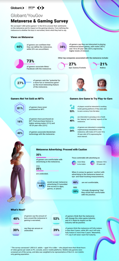 A new YouGov and Globant survey of 1,000 US-based Gamers has shown that only 38 per cent are at this point interested in playing games in the Metaverse, but with only 60 per cent feeling, they are confident in describing what the Metaverse actual is.