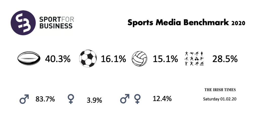 In an overall context, the big three sports of Rugby, Football and Gaelic Games accounted for 71.5 per cent of the coverage in Saturday’s Irish Times.