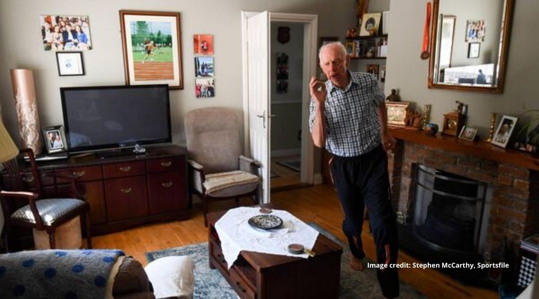 The winning image, taken in May last year, features the then 87-year-old masters athlete Pat Naughton maintaining his daily training regime in his living room at his home in Nenagh, County Tipperary, during the on-going COVID-19 pandemic restrictions.