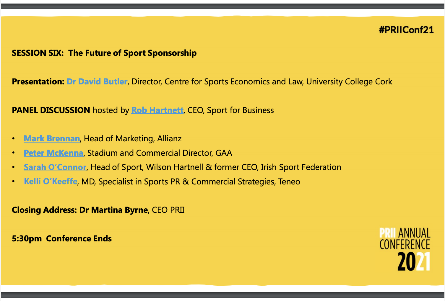 In the final session of the Public relations Institute of Ireland Annual Conference, Sport for Business’ Rob Hartnett will be hosting a panel discussion on nothing less than “The Future of Sponsorship”