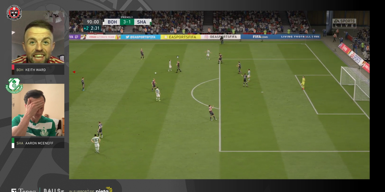 Last Friday night, the traditional Dublin Derby of Bohs and Rovers took place in a most non-traditional setting of EA Sports FIFA20 game with two of the stars of the real world going head to head and Dave McIntyre providing the commentary.