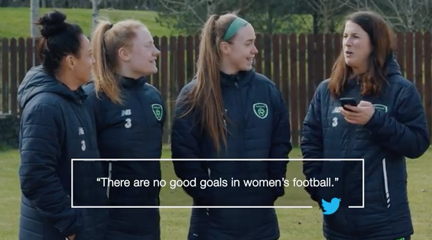 Taking time out from preparing for the upcoming World Cup qualifiers against Slovakia and a top of the table clash with the Netherlands, the internationals can be seen together taking the comments in good humour and dismissing the negative sentiments surrounding women’s football.