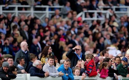 The company branding of the racecourse was added to among the crowd with the distribution of thousands of branded scarves to mark the occasion though they were only decorative as the sun shone and temperatures hit nearly 20 degrees.